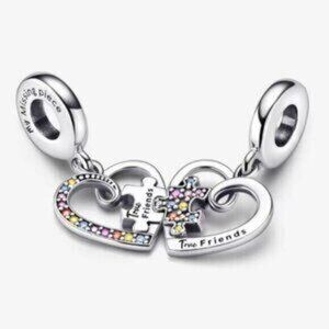 Pandora Puzzle Piece Hearts Splittable Friendship Dangle Charm