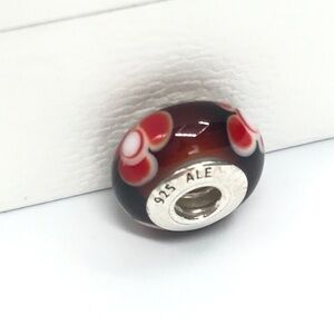 Pandora Red Floral Flower Murano Glass Charm