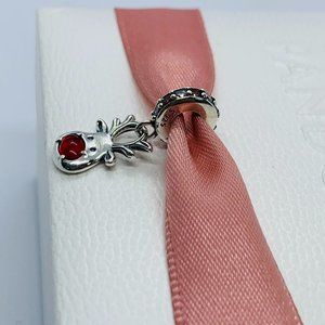 Pandora Red Nose Reindeer Murano Dangle Charm "Let your light shine" Pendant
