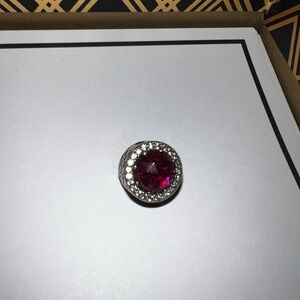 Add a touch of elegance to your collection with this stunning silver charm featuring a vibrant pink centerpiece. Perfect for any occasion.