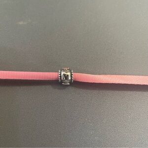 This is an authentic, retired Pandora charm made of sterling silver and 14K gold. It features the letters "M-O-M" and a touch of 14K gold and Pink Salmon colored Zirconia.