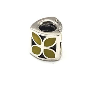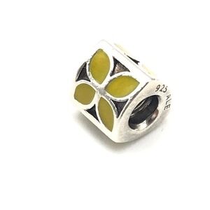 Pandora Retired Yellow Enamel Flower Floral Block Bead Charm