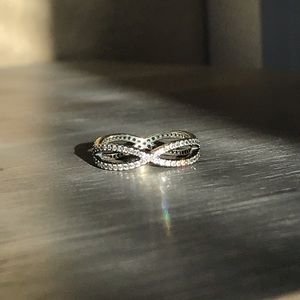 SELLING INDIVIDUALLY. All size 5. I'm selling some gently worn Pandora rings! I was OBSESSED with these rings and over time I got more rings so I'm letting these ones go. They are all silver except one of them which is baby pink gems and a baby pink band underneath.