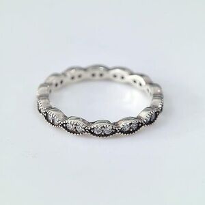 2. Pandora sparkling Oval Leaves ring in sterling silver with clear cubic zirconia stones.