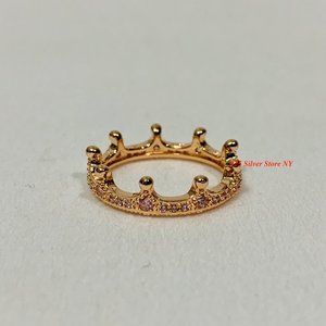 Pandora Rose Gold Pink Sparkling Crown Ring 187087CZ
