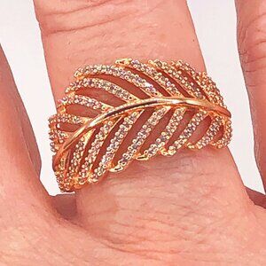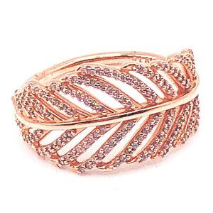 Pandora Rose™ Sparkling Feather Leaf Ring w/ Cubic Zirconia Size 58 (US 8.5)