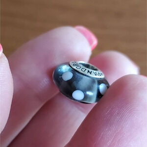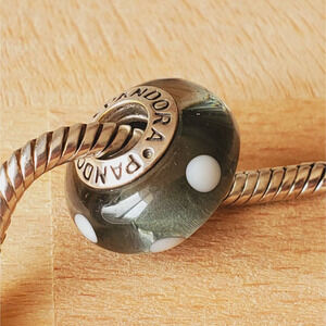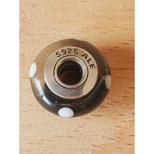 Pandora Seeing Spots Black And Light Gray Murano Glass Charm Bead