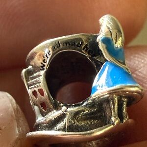 Pandora Silver Charm with Blue and Pink Floral Accents