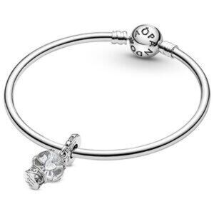 Elegant silver charm with star details. Perfect for bracelets or necklaces. Adds a touch of sparkle.
