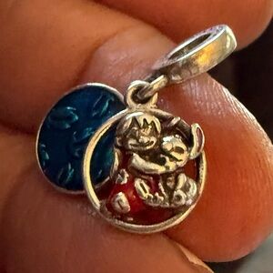 Stylish Pandora necklace featuring vibrant blue and red charms. A perfect accessory for any occasion.