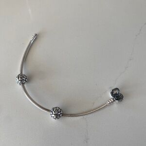 Pandora Silver Snake Chain Bracelet with 2 Spacer Charms