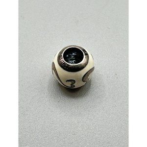 Pandora Sliding Charm Round Off White Enamel Bead with Hearts Design