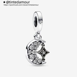 Pandora Sparkling Crescent Moon & Spinnable Star Dangle Charm
