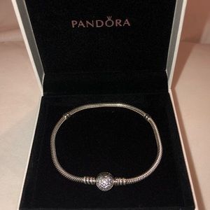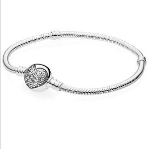 Authentic Sterling Silver Pandora Sparkling Heart Bracelet. I received it as a gift and I have never worn it. (I’m more of a gold person) Comes with box.