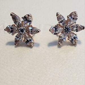 Bring the beauty of nature to your jewelry with our Sparkling Herbarium Cluster Stud Earrings. These 14k rose gold-plated studs feature a cluster of alternating pear and marquise-shaped stones around a round center stone, forming a geometric shape inspired by petal and leaf elements. An elegant reinterpretation of the shapes we find in nature, these sparkling studs are perfect for bringing a delicate, floating feel to your everyday looks.