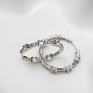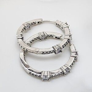 Sterling Silver Earrings feature a row of sparkling clear cubic zirconia singular stones set at different heights.