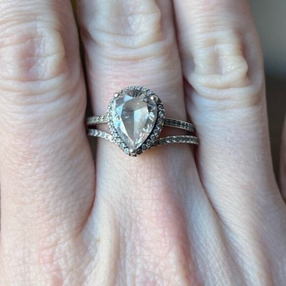 Pandora Sparkling Teardrop Halo 925 ALE Sterling Silver WEDDING Ring Set
