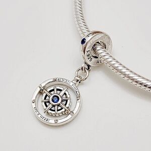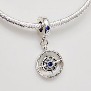 Sterling silver charm is set with blue crystals and an engraving that reads "Always follow your heart".