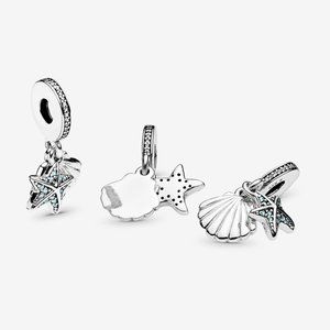 Pandora Starfish and Sea Shell Dangle Charm #792076CZF