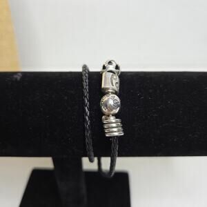 Pandora Sterling Silver Black Leather Braided Wrap Bracelet w/ 3 Charms
