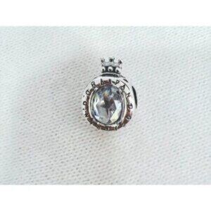 Pandora Sterling Silver Clear Sparkling Crown O Charm For Bracelet S925ALE Silve