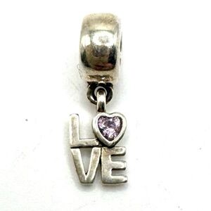 Pandora Sterling Silver "LOVE" Pink Crystal Dangle Charm 791253CZS. Great condition!