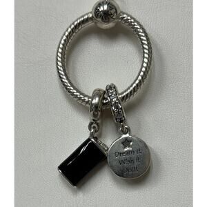 Comes with "Dream it, Wish it, Do it" and clutch handbag charms with CZ accents
