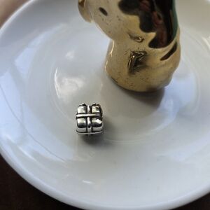 Elegant silver charm shaped like a gift box. Perfect for bracelets or necklaces. This charm is preloved, in new-like condition, and it's a twist on a charm.