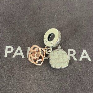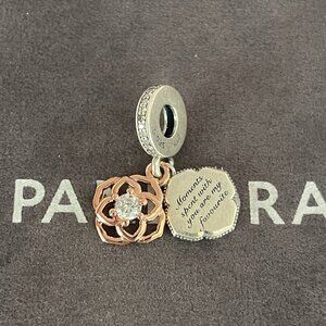 Pandora Two-tone Rose Dangle Charm Moments spent with you are my favourite