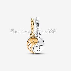 Pandora Two-tone Splittable Sun & Moon Dangle Charm