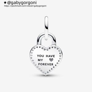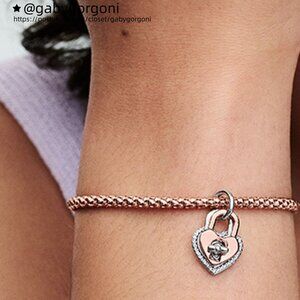 Pandora Two-tone Twistable Heart Padlock Double Dangle Charm