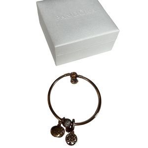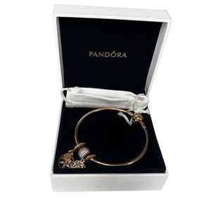 Pandora Women's Bangle & Charm Set Rose Gold Plated Size 19 with Box