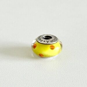 Pandora Yellow Orange Retired Polka Dots Murano Glass Bead Charm