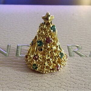 Get set for the holidays with the Glitter Christmas Tree Charm. Celebrate the magic of the festive season with this sparkling charm, finished in 14k gold plating for a warm, cozy glow. This openwork Christmas tree includes stars, hearts and snowflakes alongside red and green stones to represent baubles. A star on top and cut-out snowflake on the bottom complete this highly detailed piece. Style this charm with other glittering designs to express how much you love the most wonderful time of the year.