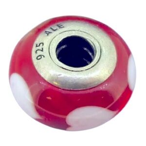 Pandora bead charm in red with white modern hearts Murano glass. Handmade in Italy. Marked 925 pandora sterling silver core. Perfect for adding a playful touch to your bracelet. Euc
