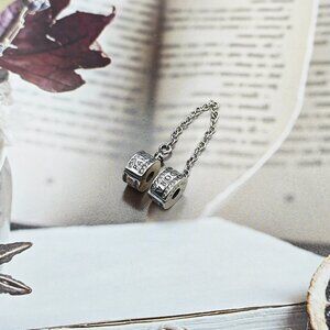 Pandora logo safety chain clip charm silver