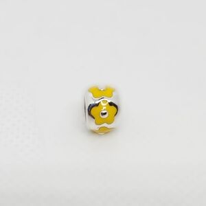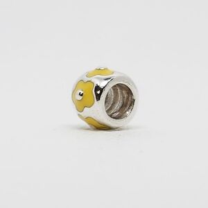 Pandora style Yellow Daisy Flowers Sterling Silver Bead. 925 stamped. Cute little bead. Clean, shiny. Internally threaded to be compatible with Pandora style bracelets. May have been purchased from Silvershake.com.