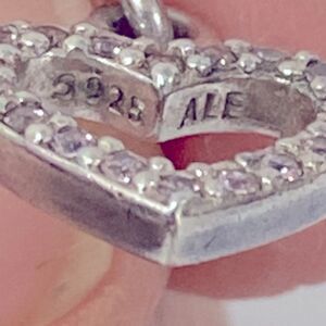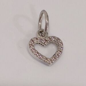 Pandora 925 Silver Pink Rhinestone Dangle Heart Charm Pendant