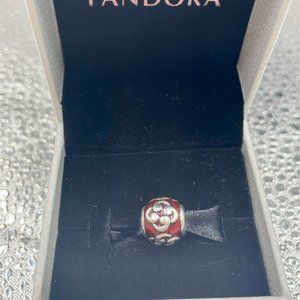 Pandora Red Scroll Charm stamped ALE 925 with box and bag. Good condition.