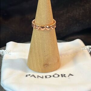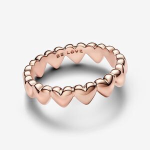 Give a gift from the heart with this 14k rose gold-plated ring. Expertly crafted with a row of hearts making up the band, this romantic design looks equally beautiful worn on its own or layered with contrasting Pandora rings. Give it as a gift for a meaningful way to express your love, or treat yourself to a piece you'll love wearing over and over.