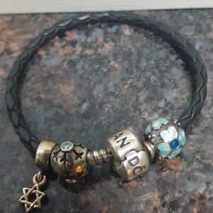 Pandora Three Charm Woven Leather Bracelet...NEW... Wth Presentation Box