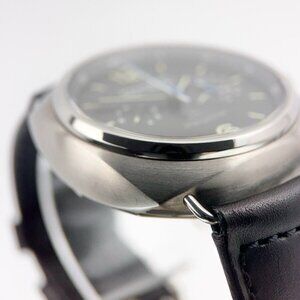 Condition: The watch is in pre-owned condition. There are minor signs of wear scattered throughout the case such as small scratches most notably to the brushed finish sides of the case as seen in the pictures, but nothing too significant. The leather strap is in lightly used condition with plenty of life left. Overall, the watch is in nice shape.