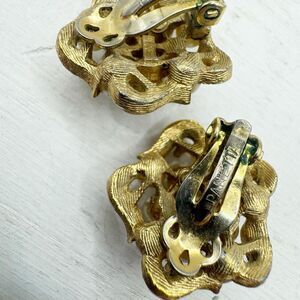 Panetta Pearl Cluster Flower Clip On Earrings Retro Mid Century Gold Tone Signed