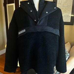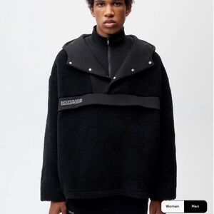 Pangaia Sz. S Unisex Recycled Wool Fleece Half-Zip Hooded Jacket Black Cotton Liner. Unisex. Retail $250.