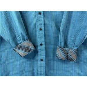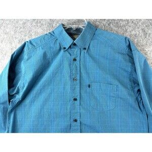 Panhandle Blue Button Down Shirt Long Sleeve Western Sz L Tuf Cooper Performance