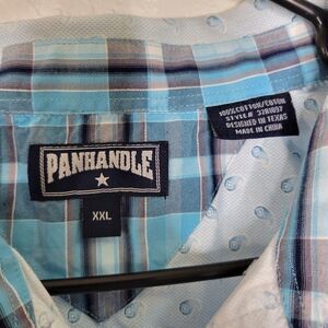 Panhandle Light Blue Paisley Dot Print Short Sleeve Western Button Front Shirt Size XXL