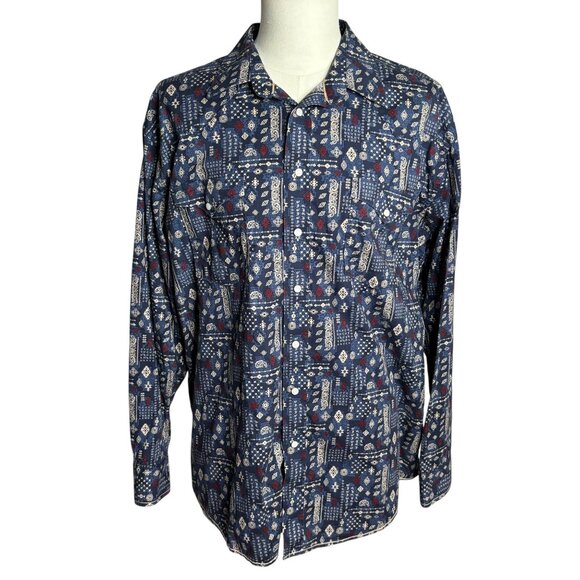 Panhandle Pearl Snap Western Shirt Large Blue Paisley Long Sleeve One Point