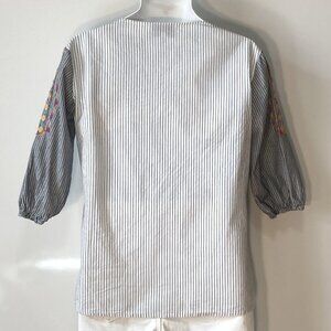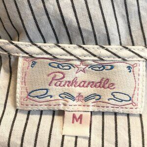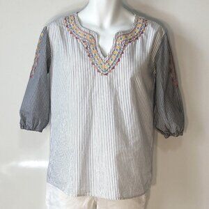 Panhandle SZ M Black & White stripe pullover top with bright embroidery details