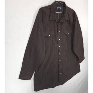 Panhandle Shirt Mens 18-35 Big Brown Striped Western Long Sleeve Pearl Snap