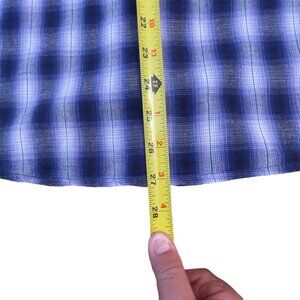 Panhandle Slim Cobalt Blue Plaid Youth Western Shirt XL / 18 100% Cotton. This item is in great condition. It measures about 19.5" across the front of the chest from underarm to underarm. 20" from underarm to bottom of sleeve and 27" from the back of the neck to bottom edge of garment. Please view all pictures carefully since they are considered part of the description. Thank you for viewing this listing and please check out my other items. I-3